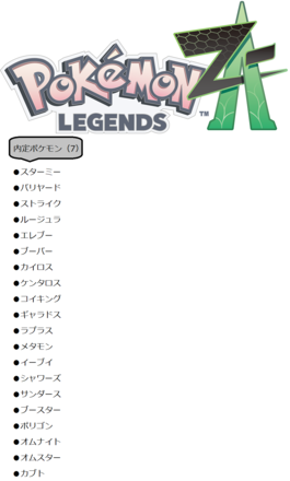 == 『Pokémon LEGENDS Z-A』【ポケモン】 == 内定ポケモン(7)