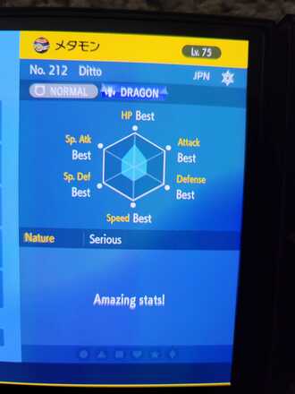 出:海外メタモン 6V 求:日本メタモン 6V FT English Ditto 6IV LF Japanese Ditto 6IV Please share a photo of the Ditto and IGN My IGN is Briar
