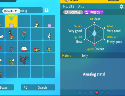 LF: 5IV 0Speed Quiet Ditto FT: JPN: shiny6IV Hardy, 5IV Relaxed (decent DEF), 5IV Impish (no good ATK) SP-EU: shiny5IV 0SpA Adamant in Love Ball, shiny5IV 0Atk Modest in Love Ball KOR: shiny5IV 0Atk Modest in Beast Ball ITA: 6IV Jolly CHT: 5IV Hardy (decent ATK) marked ENG: 5IV Naughty(decent SpATK), 5IV Careful (decent SpATK), 5IV Gentle (decent SPD), 5IV Brave (decent SPD), 5IV Mild (fantastic SpDEF), 5IV Careful (pretty good DEF), 5IV Impish (decent HP)