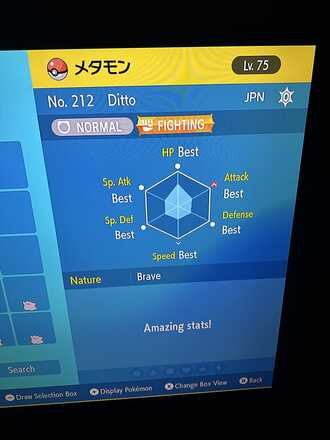 Another player has this exact same ditto. So it's likely a clone. If you send a picture of the judge of the 6 IV brave one (JPN), I'll trade.