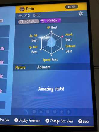 ***Ditto Collector/Breeder*** LF: 5-6 IV V ITA, KOR, and CHS Dittos - need different languages for the collection FT: 5 IV V JPN and ENG (possibly FRE) Dittos Please post a pic of the stats (numbers on the graph). I can do 1:1 same-nature trades. I should have every nature available and I'm looking to vary my foreign Ditto collection without sacrificing the IVs I've collected. Thankyou!