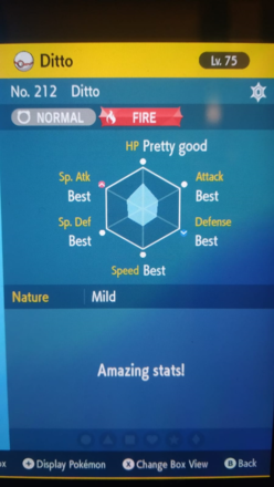 LF: 5-6 IV V ITA, KOR, and CHT (Taiwan) Dittos FT: 5 IV V JPN and ENG (possibly FRE) Dittos Please post a pic of the stats (numbers on the graph). I should have every nature available and I'm looking to vary my foreign Ditto collection without sacrificing the IVs I've collected. Thankyou!