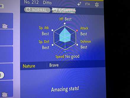 LF: (Non-ENG) 6IV Ditto Timid (おくびょう) or Sassy (なまいき) FT: (ENG) 6IV Ditto