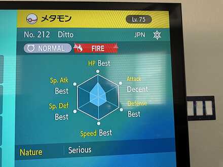 FT: English Ditto 5IV LF: Foreign Ditto 5IV Adamant/Bold/Brave/Quiet 出:海外メタモン 5V 求:日本メタモン 5V いじっぱり / ずぶとい / ゆうかん / れいせい 8354 6739 (Thomas)