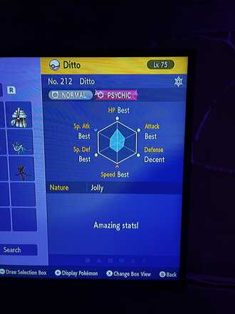 I have 5V(A0) Japanese Ditto. I want 5V(A0) foreigen Ditto. my Ditto photo. ダメかも=No good さいこう= Best I'm looking for a Ditto with 5IV and 0 attack If you can exchange it, please send a photo of Ditto along with your reply.