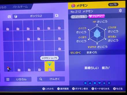 Hello! I have japanese Ditto 6IV Adamant さいこう means best.