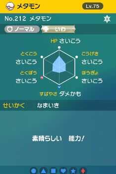 FT: Foreign Ditto 6IV Jolly LF: Japanese Ditto 6IV Adamant 出:海外メタモン 6V ようき 求:日本メタモン 6V いじっぱり 6246 0451 |