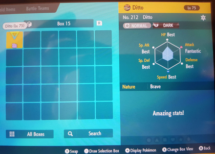 FT: ENG Ditto 5IV - 30 Atk (Fantastic / すばらしい) LF: Foreign Ditto 5IV + Fantastic or 6IV