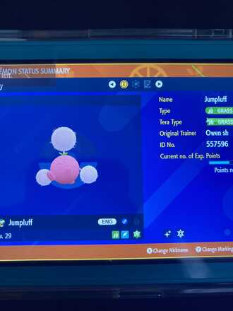 I’m looking for a shiny hawlucha on Pokémon Scarlet and Violet. Offering shiny Jumpluff I got in a trade.
