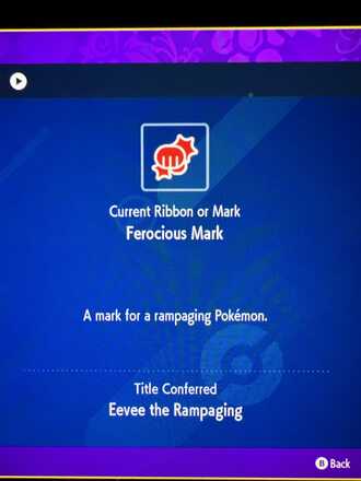 Here is what the ferocious mark looks like caught it on a random Eevee.