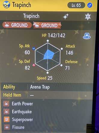 Just caught a shiny trapinch from the wild with a Calmness Mark. “Trapinch the serene”