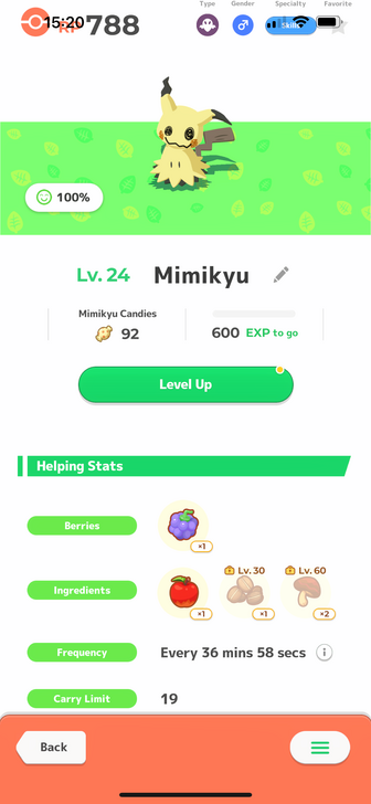 My Mimikyu unlocks Rousing Coffee x1 at Lvl30, I think it is one of the random options