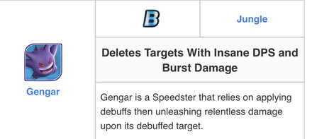 Tsareena honestly its own tier. Strongest in game, basically if theres one on a team and they know how to play they usually get mvp. I think gengar should be moved down, idk anyone who plays gengar.