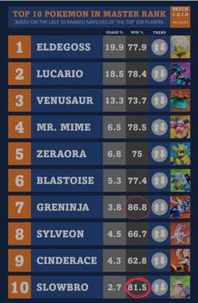 People are still sleeping on how good Slowbro is right now. Those people are most likely the ones following Verlisify as well, even though we know he understands so little of the game and spews out "guides" that are full of crap. You can see how the few ACTUALLY good players get results with the mon on the attached picture. Slowbro has the second highest winrate on 2k+ Masters, just after Greninja.