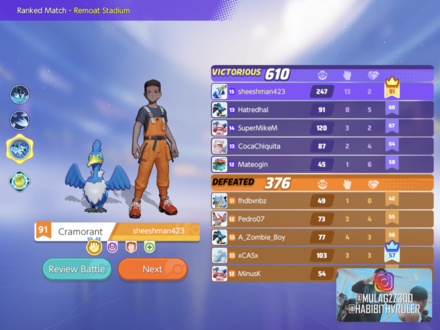 Name: Scion36 ID: N68LM Main Pokémon: Zeraora Moveset: Volt switch | Discharge Secondary Pokémon: Talonflame Avg ranked score: 120 Lane: Central lane Playstyle: Jungling Central lane until lvl 6, then joining the bottom lane with focus on farming and defending until lvl 8, then focusing on scoring and going offensive. Preferable partners: Pikachu, Talonflame, Lucario,Venusaur, Cinderace. Playtime: Everyday night My current rank: Veteran class 1 Minimum score required: 70-80 in ranked