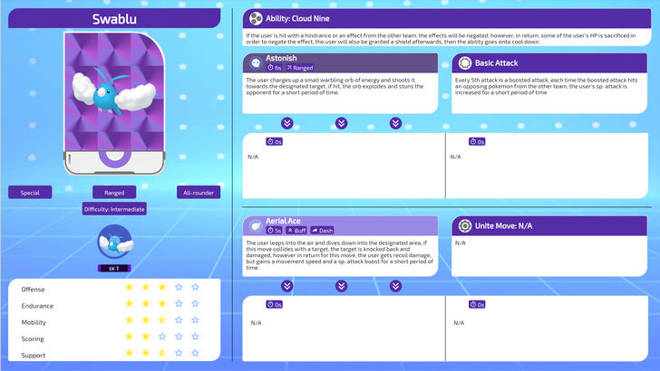 Bruh I spent a whole hour making stats for both Altaria and Swablu Had to put N/A because Swablu would just level up into Altaria and get the moves it needs instead. I spent way too long for this, hope you guys have time to add Altaria as a playable character but since it's in one of the maps as a bot who knows? My hands need a break.