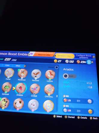 Hey! I noticed that I have a lot of the ones you guys are missing, they’re not Gold, but definitely enough to make calculations! Here you go! (They don’t all fit with all the words so it’ll be Multiple Messages!) Furret (White & Bronze): Sp. Atk -1.8 | Critical-Hit Rate +0.3% Ariados (Black & Bronze): Attack +1.2 | Sp. Atk -1.8 Lanturn (Yellow & Bronze): HP +30 | Attack -1.2 Politoed (Blue & Bronze): Attack -1.2 | Sp. Def +3 Slowking (Blue/Purple & Bronze): Sp. Def +3 | Movement Speed -21