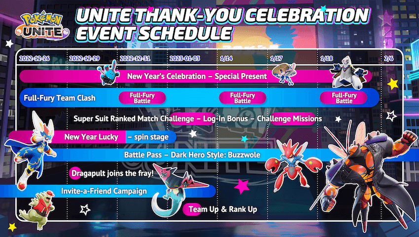 Pokemon UNITE's New Year Events for the upcoming new year 2023 has been announced! Check out all new events, new battle pass, new Holowear, new rewards, and more!