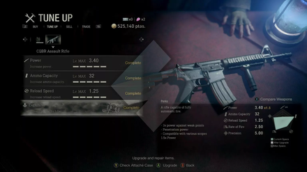CQBR AR Power: Level 2: 2.30 (22,000 ptas) Level 3: 2.60 (36,000 ptas) Level 4: 3.00 (50,000 ptas) Level 5: 3.40 (64,000 ptas) Ammo: Level 2: 23 (8,000 ptas) Level 3: 26 (14,000 ptas) Level 4: 29 (20,000 ptas) Level 5: 32 (26,000 ptas) Reload: Level 2: 0.95 (12,000 ptas) Level 3: 1.05 (19,000 ptas) Level 4: 1.15 (26,000 ptas) Level 5: 1.25 (33,000 ptas)