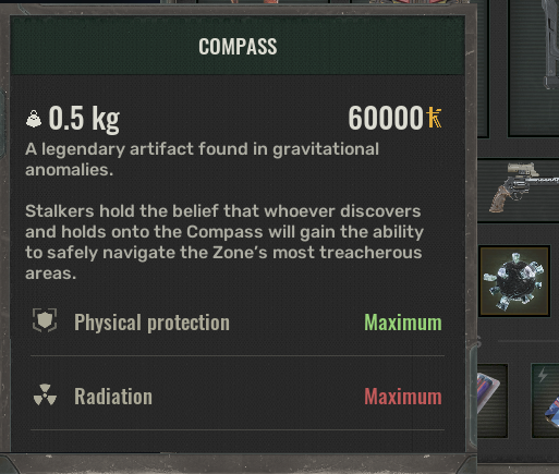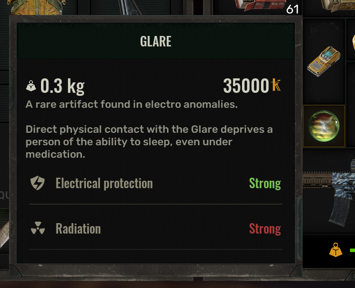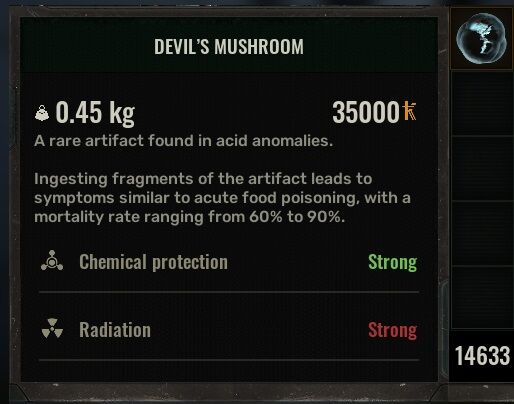 Found an artifact "Liquid Rock", has Maxed radiation and chemical protection, has an analgesic effect.