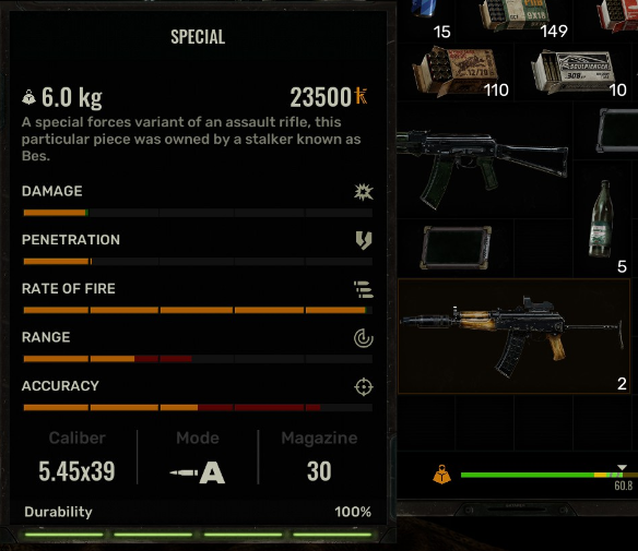 at mill up right from the rookie village i found the unique weapon "Special" a variant of the akm-74u