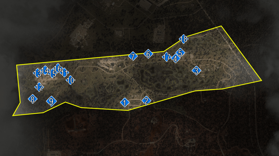 | 10 | Duffle Bag West of Spark Bunker | ![]() There is a duffle bag behind a flipped over desk inside a small building directly west of the Spark Bunker POI. |