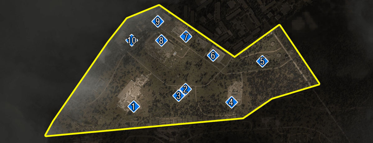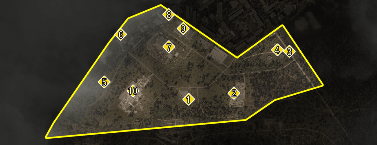 | 5 | Abandoned Science Campus Safe | ![]() Go to the small building southwest of the Abandoned Science Campus POI. You will find a small safe inside the laboratory. |