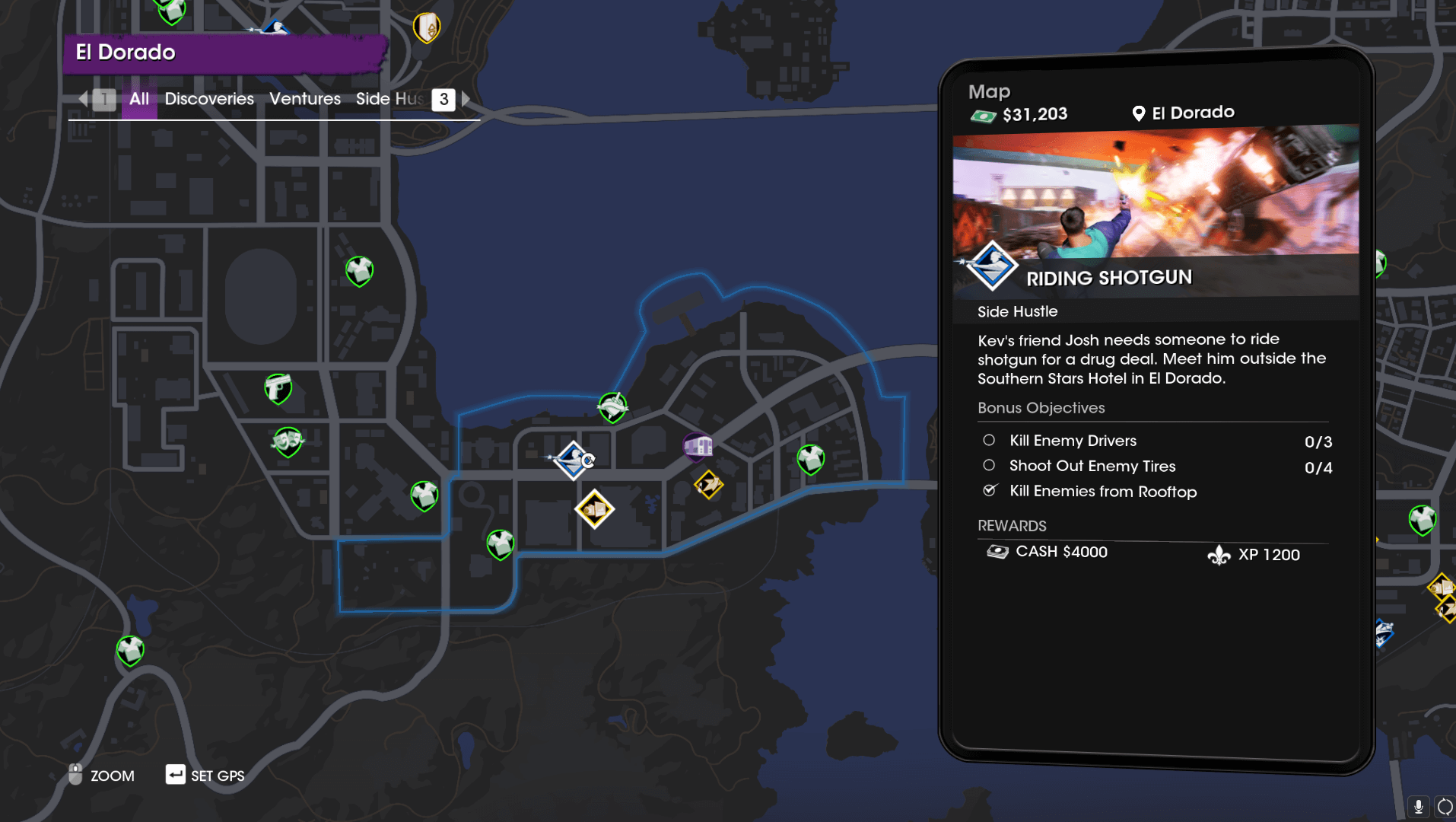 Didn't finish objectives? Feel like grinding for more cash and EXP? Then you're in luck! You can easily do all those things by repeating the Side Hustle once again.