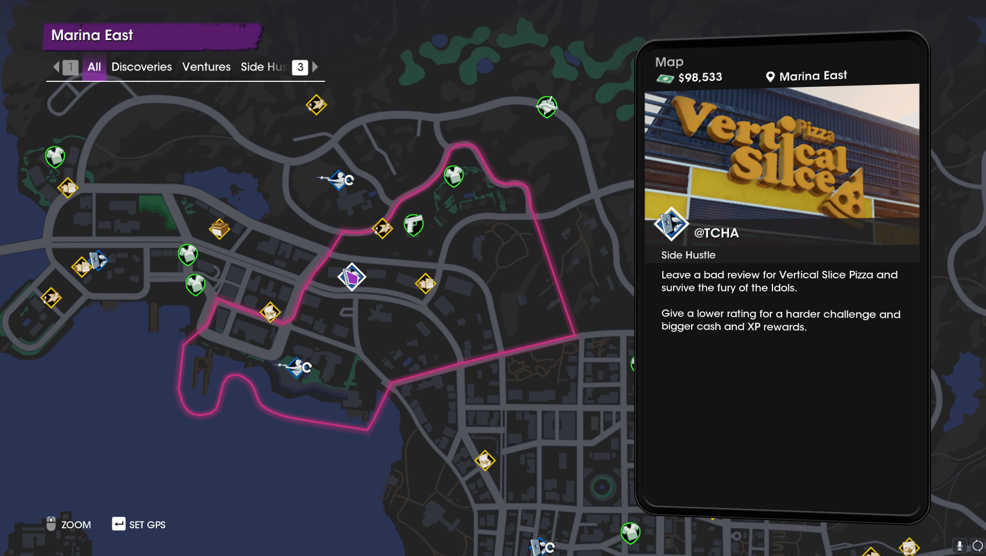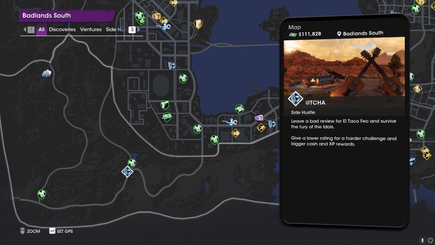 @tcha is a Side Hustle available in the 2022 reboot of Saints Row (Saints Row 5). The objective of this Side Hustle is to leave bad reviews and deal with a mob of enemies. Read on to learn the locations of all @tcha Side Hustles, and how to complete them.