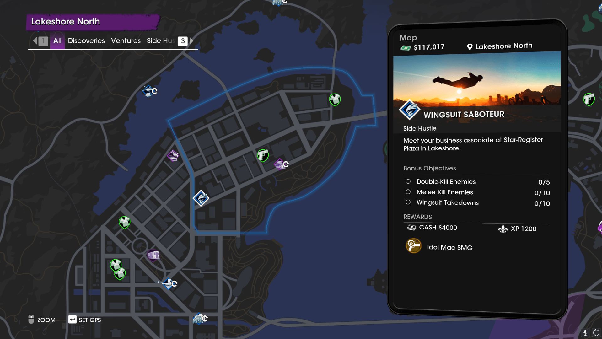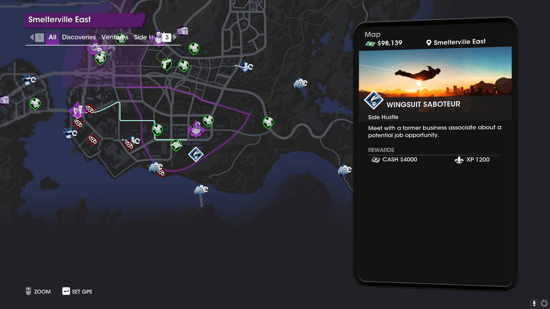 Wingsuit Saboteur Side Hustles are not all available from the beginning. More Wingsuit Saboteur Side Hustles will unlock as you complete the ones that are currently on your map.