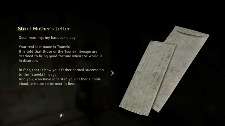 To find this Strict Mother's Letter, go left from the Fox Mural to enter a room with an altar and some Fox Statues. Face the altar, then go right to enter another room with the letter on the floor.