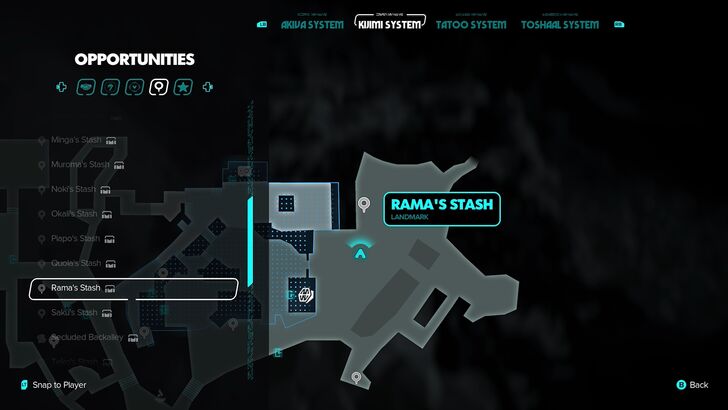 Kijimi - Rama's Stash is wrong. On the position you are showing it, is actually Hakan's Stash. Rama's Stash is in the same area, but closer to the "The Wellspring" entrance.