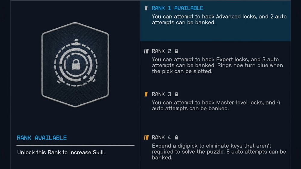 You can earn and bank an auto slot by successfully picking locks, though there is a limit to how many auto slots you can bank. You can bank two auto slots in Rank 1 of the Security Skill, three auto slots in Rank 2, four auto slots in Rank 3, and five auto slots in Rank 4.
