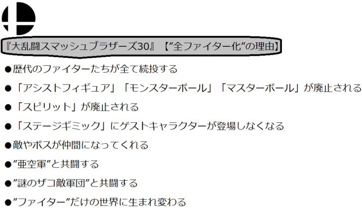 == 『大乱闘スマッシュブラザーズ30』【変更点】 == 『スマブラ』は30周年! ファイターの正体がついに明らかに!