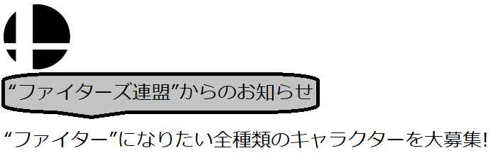 == “ファイターズ連盟”からのお知らせ == “ファイター”になりたい全種類のキャラクターを大募集!