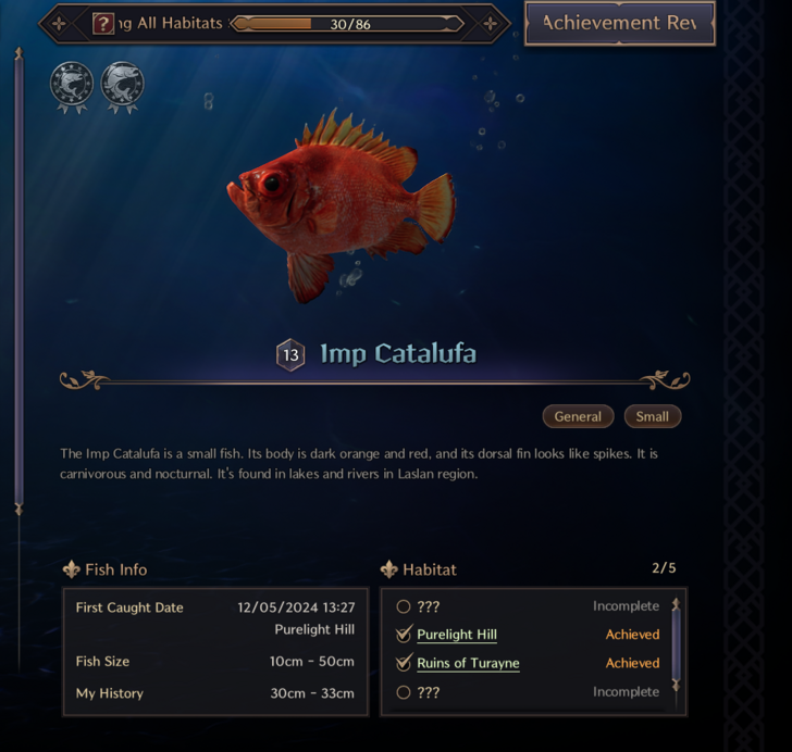 I noticed you don't have the small pond in the bottom left of Ruins of Turayne, I've caught at least Imp Catalufa there.
