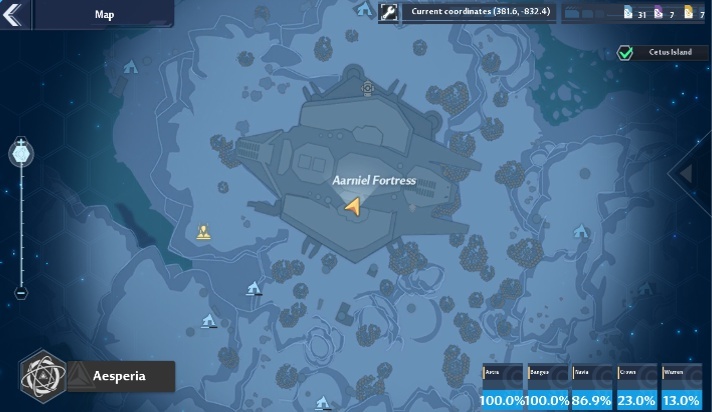 Password: 8521 Coordinates: 381.6, -832.4 Nearest Spacerift: Aarniel Fortress |