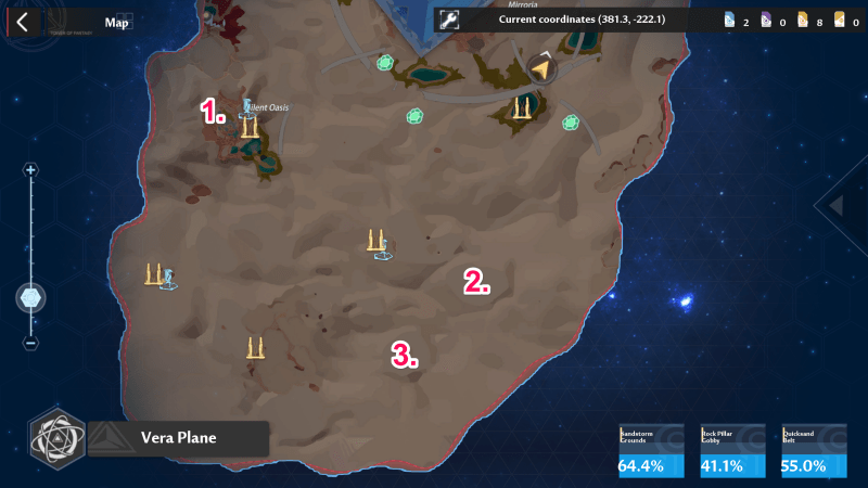 This is a guide on all of the Scenic Points in Quicksand Belt in the Vera Region in Tower of Fantasy. Check out our list for the map location and coordinates of Silent Oasis, Deeprun Cave, and Rockstack Cave.