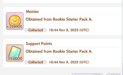 Rookie Starter Pack A gives 200,000 monies on Global. The list could use an update.