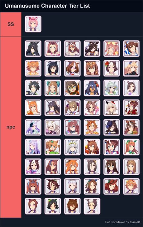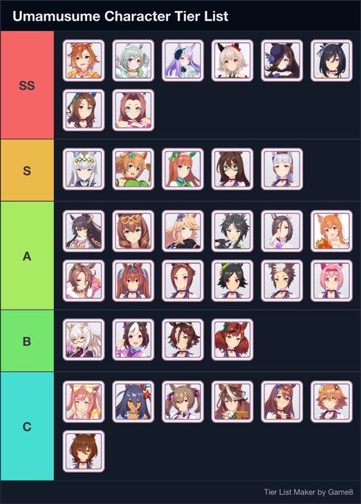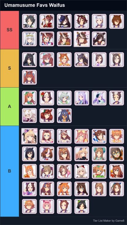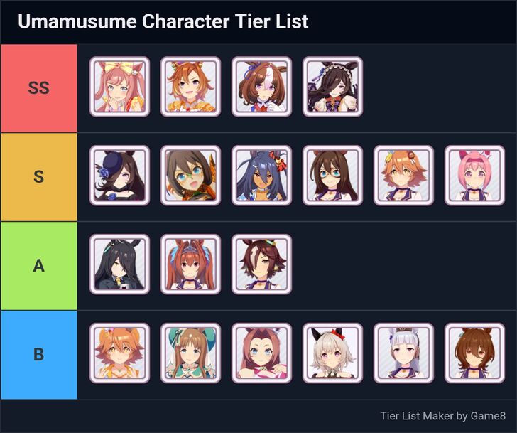 This is a Character Tier List Maker for Umamusume: Pretty Derby! Create and submit community-made or personalized character tier lists here!