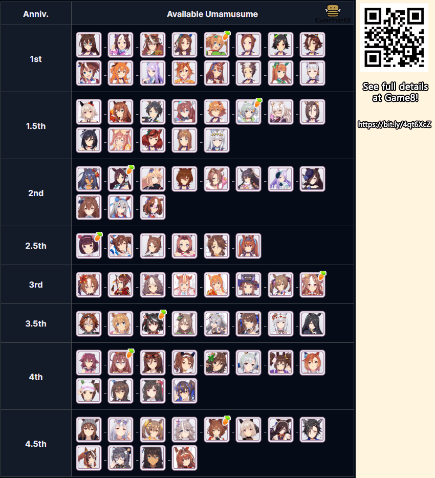 | Anniv. | Available Umamusume |