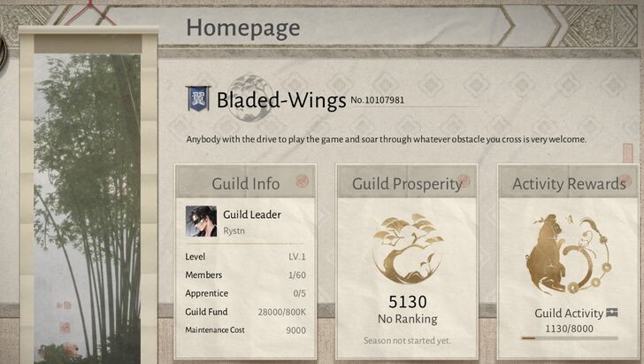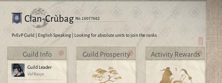 "SunOfRoses" New Casual free exploration guild for ENG/CN speakers. SEA region! Finding a guild to start up your jianghu journey ? Join the community and lets figure things out along the way 👍 no pressure/commitment . Do things at your own pace !