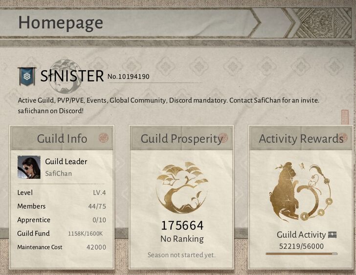 "SunOfRoses" New Casual free exploration chill guild for ENG/CN speakers. SEA region/other regions welcomed! Finding a guild to start up your jianghu journey ? Join the community and lets figure things out along the way 👍 no pressure/commitment . Do things at your own pace !