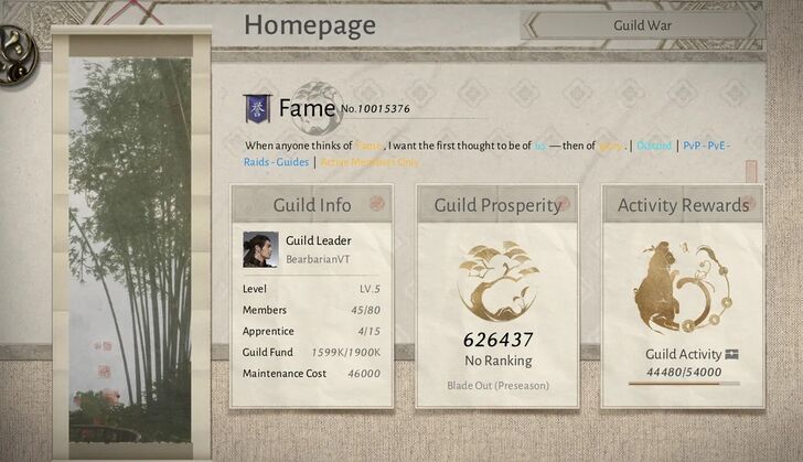 If your current guild is inactive, you can switch to a different one by clicking the Leave Guild button in the Member Roster tab to maximize the bonuses you receive from a guild.