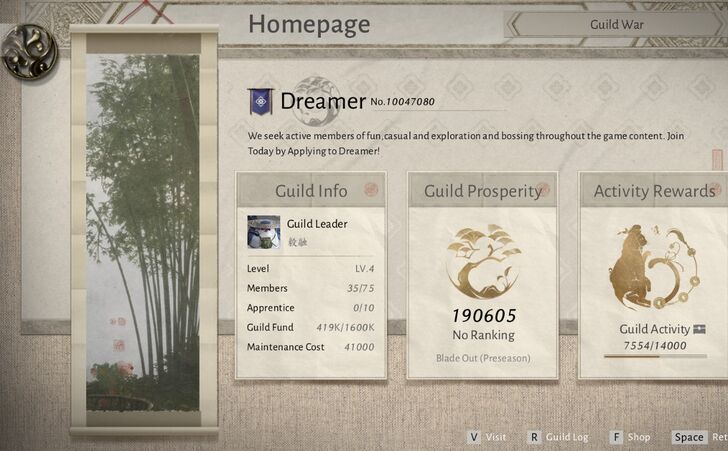 Dreamer Guild is an Active NA Guild that are recruiting all types of players either PvE & PvP players! We mainly progressing the game together and help each other bosses to hunt for gears as we level up our guild progression to start up for the long term! If you are reading this and have gotten this far, I welcome you to join Dreamer! Let our Journey as Dreamer's Wanderer begin! Dreamer's Discord: https://discord.gg/FS4ppscqce