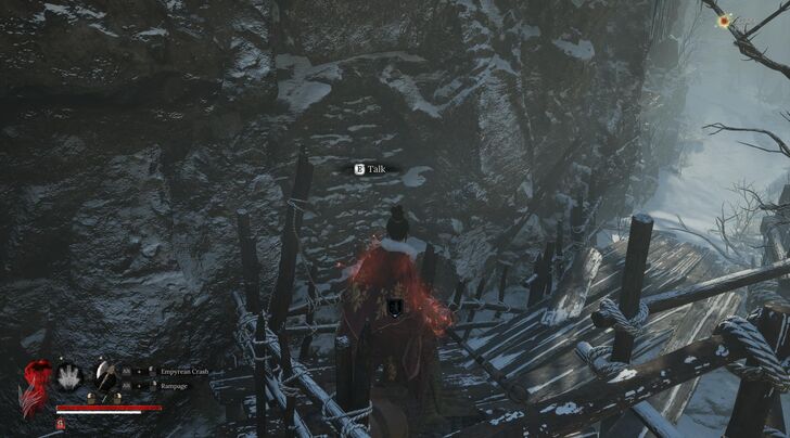 Grandma location here. From the snowy passage shrine, go out of the tunnel to the snowy area. Then, take the path on the right. The bridge to cross to Mort's Grotto will be on your right. Directly to your left will be a wooden ramp. Take the short ramp to the end and you can interact with the wall. It's easy to miss because it's just bricks that can blend into the cliffside. After this I recieved the Vitality Bowl but Matchstick disappeared though, not in the city or Outskirts House