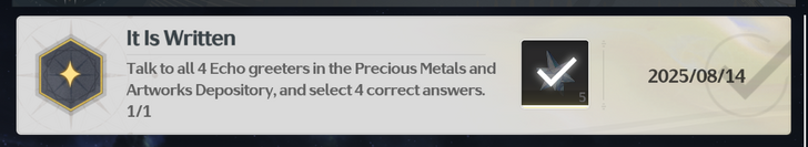 Underground Vault. "It Is Written" talk to 4 Echo Greeters on the 2nd Floor in Precious Metals and Artworks Depository & answer the right question on each Echo Greeters.