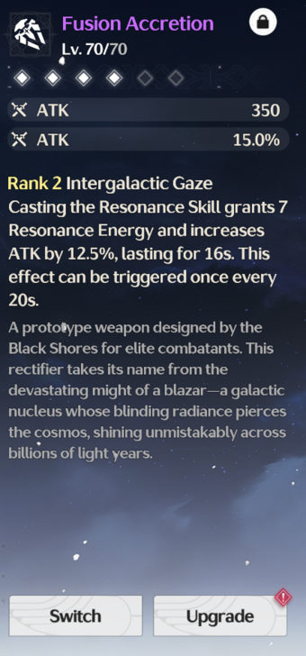 Level 70 cap, ascending rank moves the top ATK to 375.