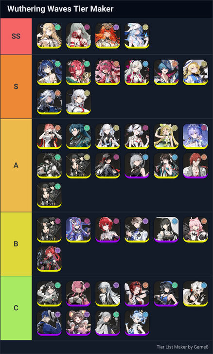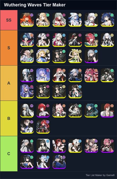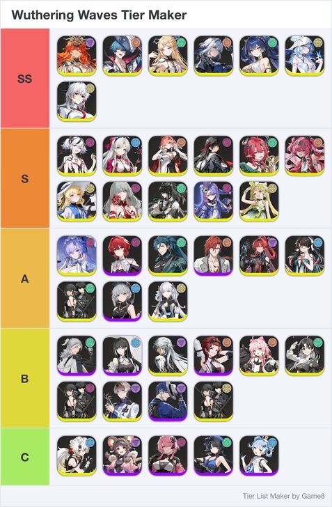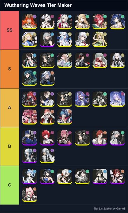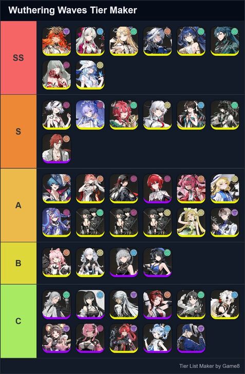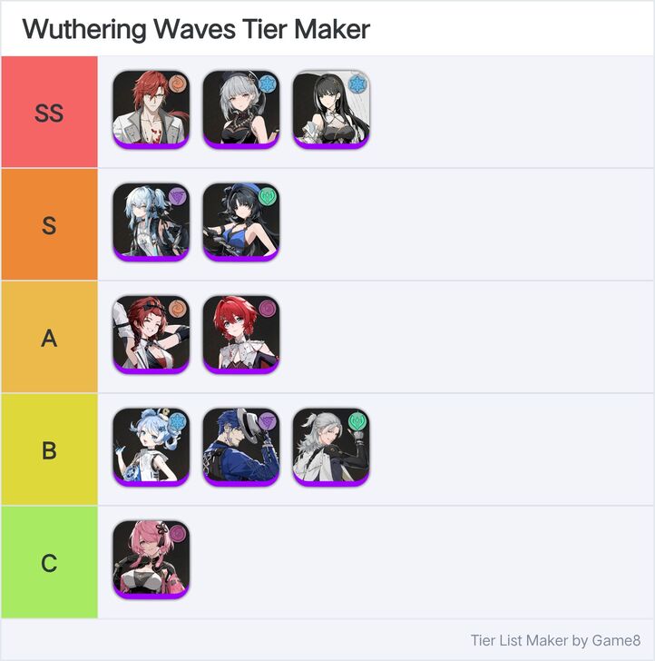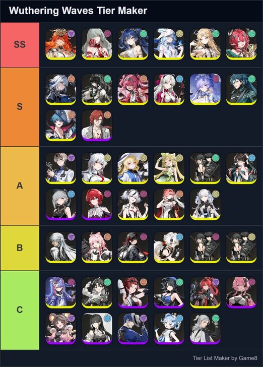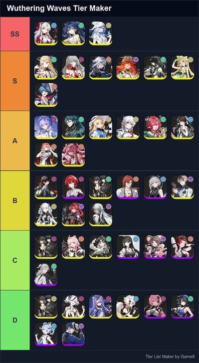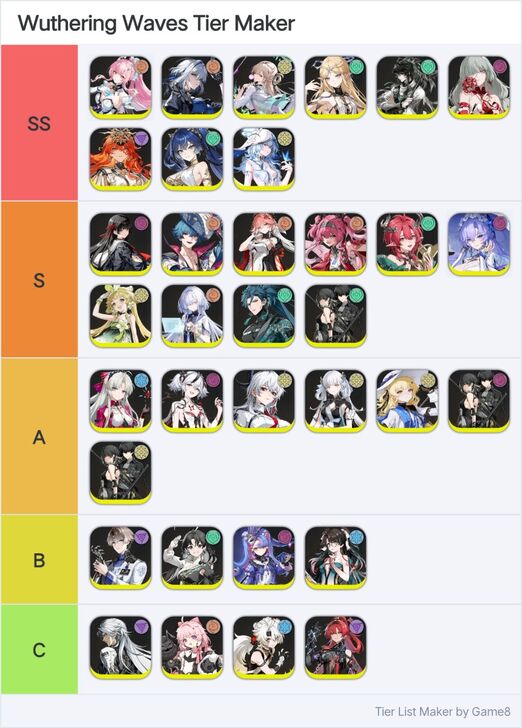Game8's Wuthering Waves (WuWa) tier list maker. Create, submit, and vote for community tier lists here!