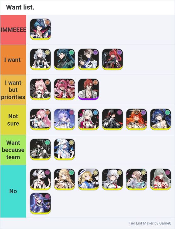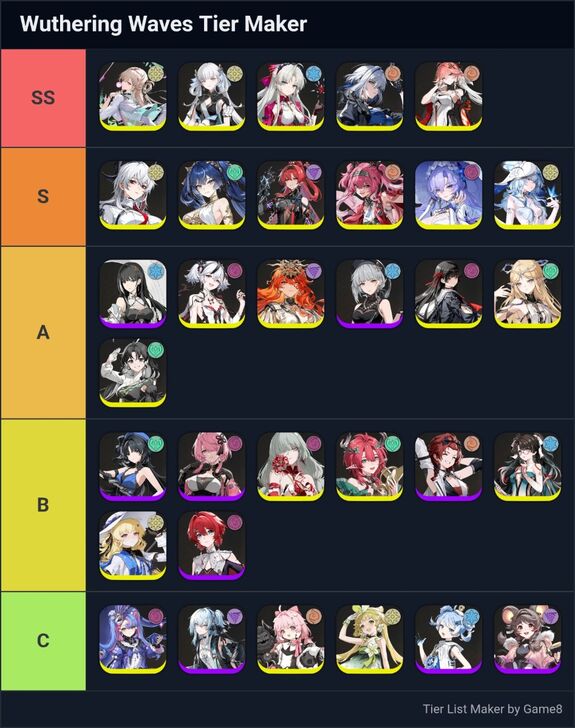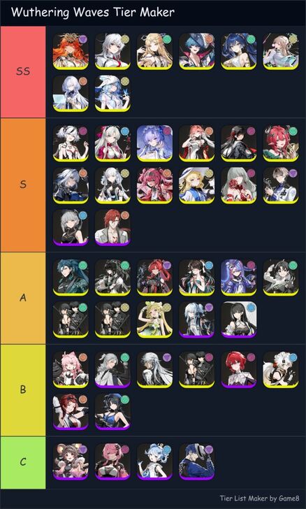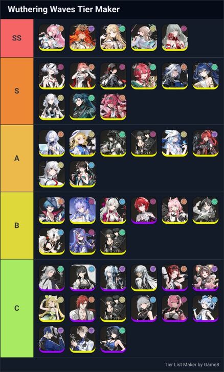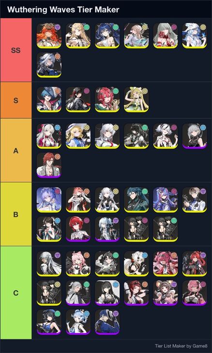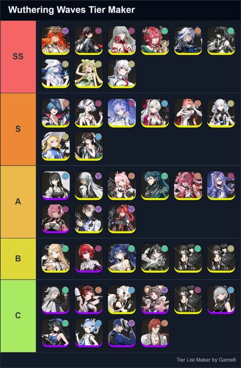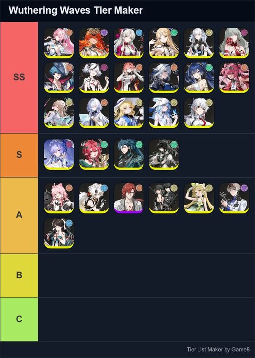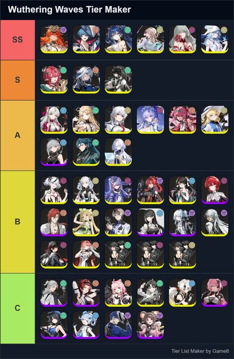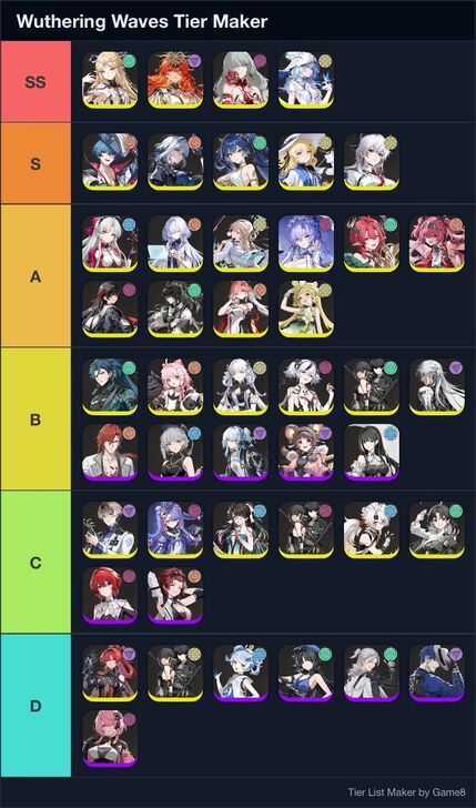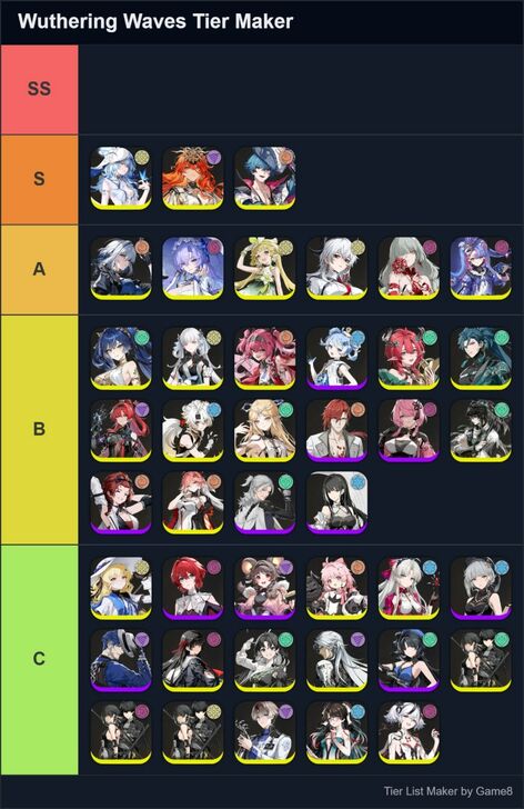 Game8's Wuthering Waves (WuWa) tier list maker. Create, submit, and vote for community tier lists here!